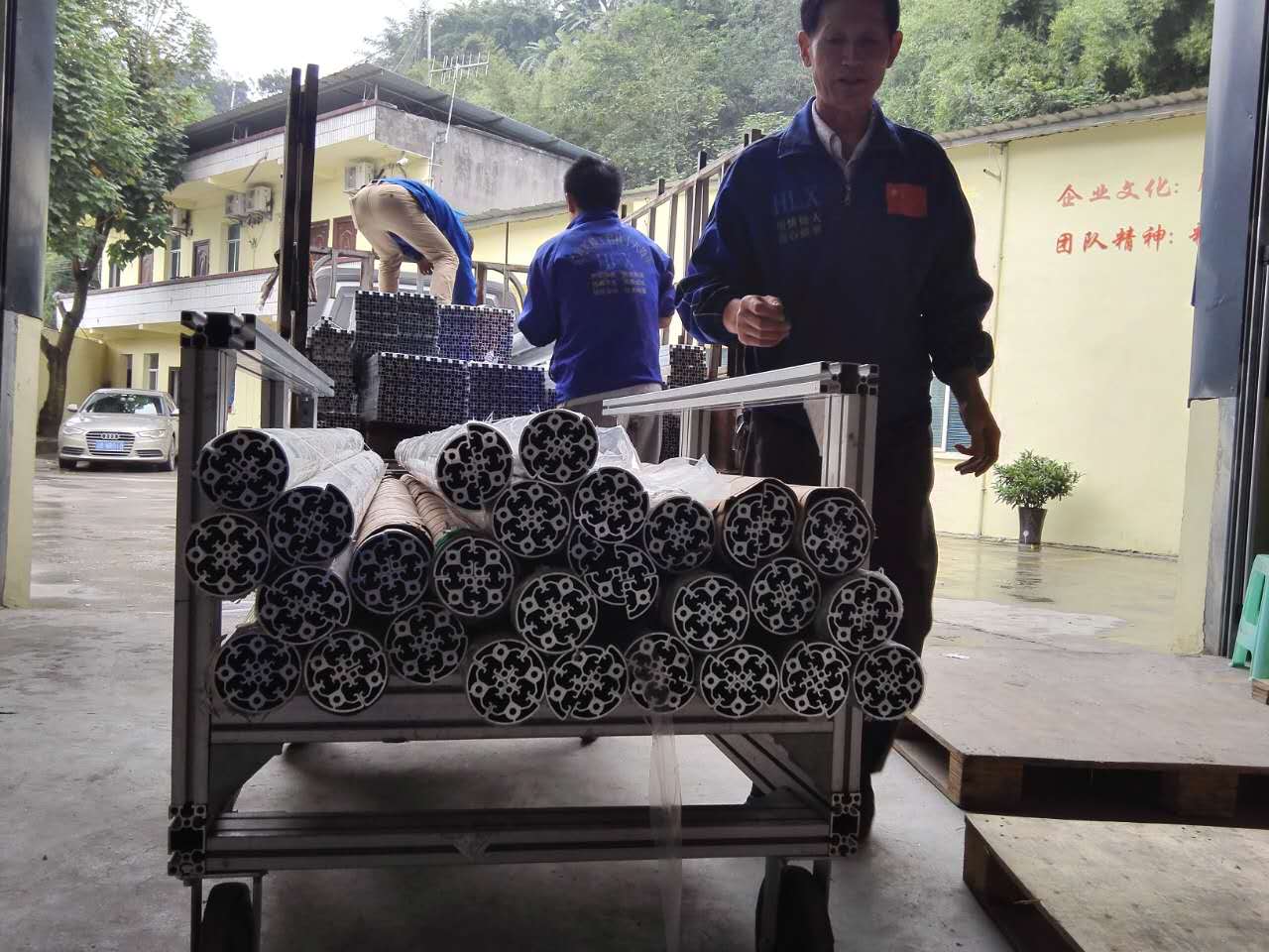 匯利興戰(zhàn)士們小心翼翼的抬放,并且將一根根鋁型材整齊擺放在貨車(chē)上。(專(zhuān)心、專(zhuān)業(yè)、專(zhuān)注、專(zhuān)家-匯利興)