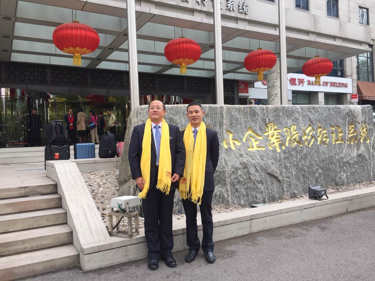鐘輝董事長(zhǎng)(左)與重慶公司胡偉路總經(jīng)理(右)在全國(guó)中小企業(yè)股份轉(zhuǎn)讓系統(tǒng)大廳前合影