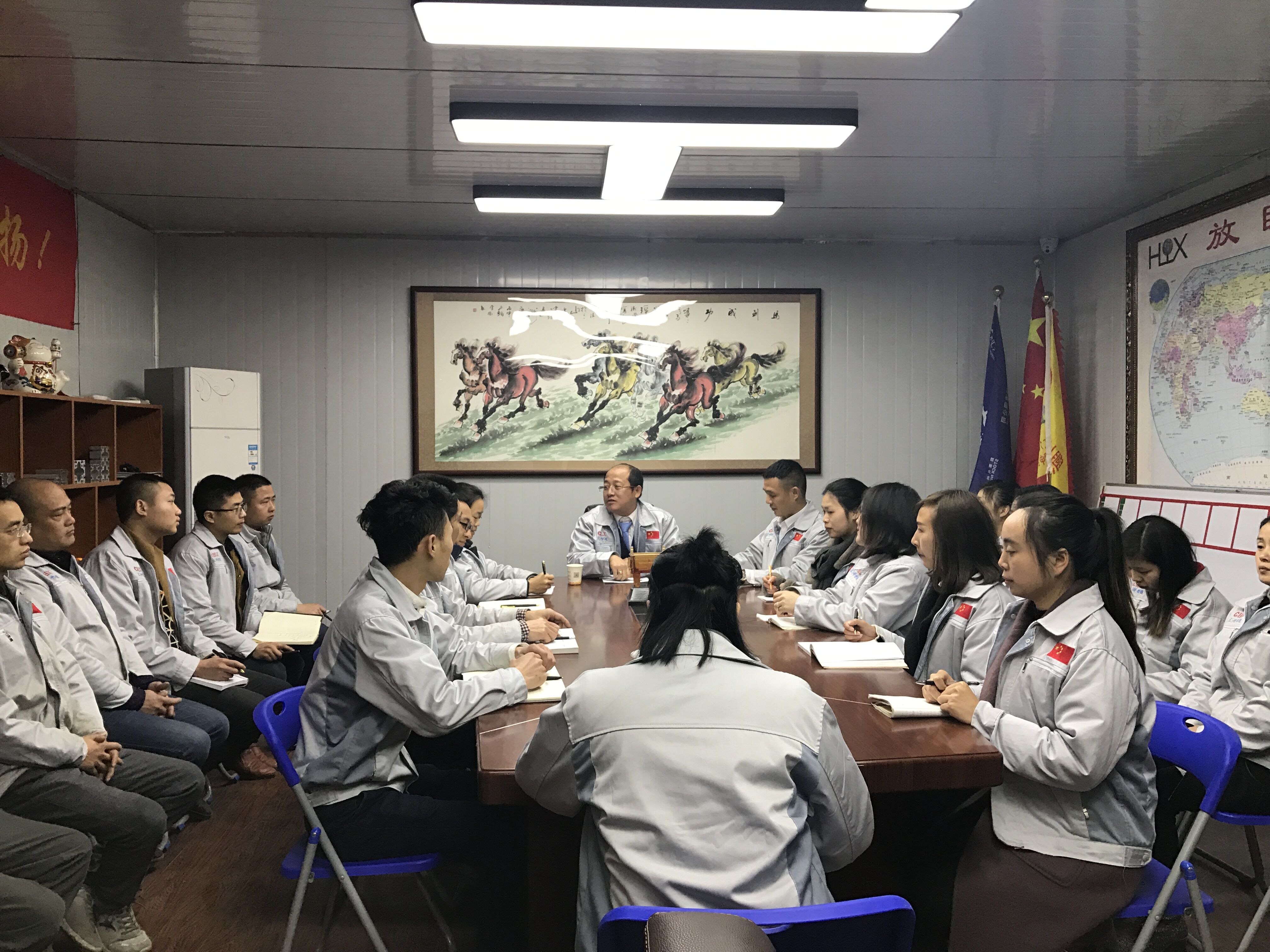 2月27日,匯興智造董事長鐘輝先生蒞臨重慶匯利興子公司考察并指導(dǎo)工作。重慶子公司全體人員對鐘董事長的到來表示熱烈歡迎,并于12點30分由鐘董事長領(lǐng)導(dǎo)召開會議。 鐘董事長在會議上做相應(yīng)會議的闡述 展望未來、登高望遠(yuǎn)。會上,鐘董事長首先提到兩個特質(zhì)“智慧與力量”,進而談到企業(yè)的擁抱變化及展望未來,并切身實際談到匯興智造所擁抱的變化及所具備的十三大體系的升級(客戶、產(chǎn)品、設(shè)備、工具、管理、名字、品牌、宣傳等);進而也公布公司近段時間一系列喜訊事宜并讓我們感受到公司前進步伐的節(jié)奏感及時效感,同時表示國家一系列政策對我司的大力支持與鼓勵,并談及到平臺的力量,品牌的力量”。 全體人員用士氣唱響心中的船(匯利興) 鐘董事長說道:公司”倍增計劃”是以內(nèi)伸與外延相結(jié)合發(fā)展進而勉勵我們:在崗也應(yīng)在職,在職也應(yīng)在職,且人因夢想而偉大,以走一步看兩步想三步為理念朝著目標(biāo)努力奔跑。隨機應(yīng)變,有配而來,整個會議以“匯利興是我們的船而我們在船上”的吶喊聲兒結(jié)束,但那一聲聲強大的聲音滲透在匯利興人每個人的腦海,將永不停歇。