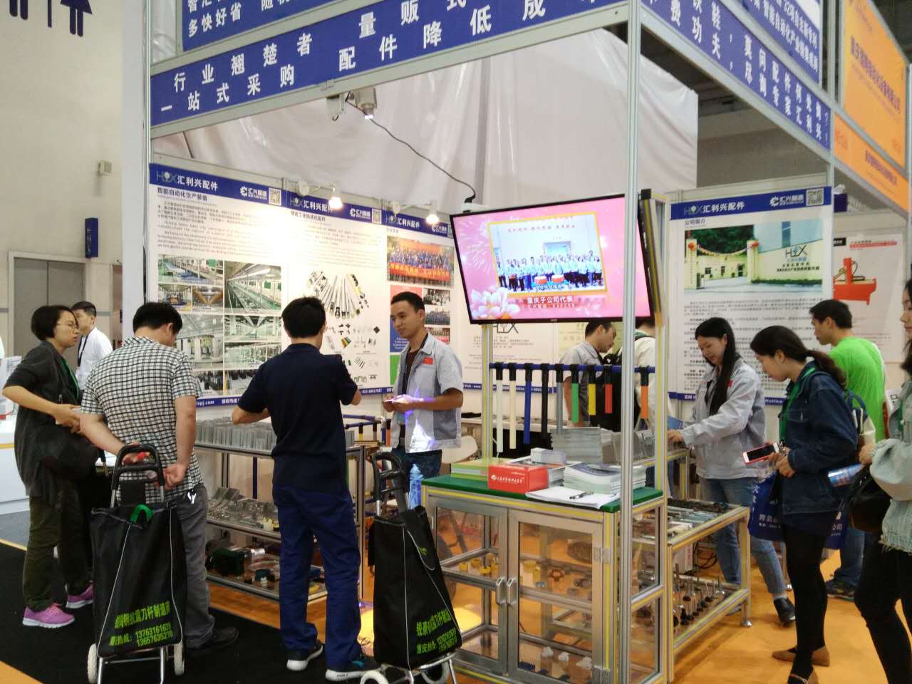 2017第18屆立嘉國際機械展覽會在重慶舉行,展會以創(chuàng)新、開放、多元、共享為主題,以中國(重慶)智能制造國際論壇解讀未來十年中國智能制造路線,助制造智能化轉(zhuǎn)型為傳統(tǒng)制造行業(yè)向智能制造的過渡起到重要助推作用。重慶匯利興工業(yè)自動化設(shè)備有限公司(以下簡稱重慶匯利興)于2017年5月25-28日亮相于2017第18屆立嘉機械展覽會,展位號為N5館5127。 重慶匯利興展會咨詢現(xiàn)場 5月25日-5月28日,重慶匯利興主要參展人員:業(yè)務(wù)經(jīng)理方向紅、劉文等相關(guān)人員。重慶匯利興在本次展會中挑選了300余款其中的70余款鋁材規(guī)格,多種規(guī)格配件、精益管、流利條及滾筒等型號吸引了數(shù)以千計前來觀展的客戶,得到近百家客戶的好評及回贈的名片!現(xiàn)場客人對鋁型材及滾筒、配件的熱衷度頗高,一一咨詢我司人員及相關(guān)技術(shù),一致不斷獲得客戶的認(rèn)可及稱贊。 業(yè)務(wù)經(jīng)理方向紅為客人講解相關(guān)技術(shù)問題 本展會中:精益管件架、鋁合金柜及架子、流利條、摩擦線體、滾筒線等材料都以我司相關(guān)配件及鋁材精工打造,現(xiàn)場客人咨詢不斷并現(xiàn)場交接相關(guān)產(chǎn)線問題,我司人員耐心為每一位客人講解相關(guān)問題并予以提供更適合的產(chǎn)線解決方案。品牌及專業(yè)度現(xiàn)場榮獲客人的信任,并與之合影。 業(yè)務(wù)經(jīng)理劉文與客人合影留念 匯利興,一個專業(yè)制造各線體配件的品牌,核心業(yè)務(wù):工業(yè)鋁型材、滾筒、精益管、工裝板、流利條等精密工業(yè)配件一站式快速采購服務(wù),其特點:多、快、好、省,隨機應(yīng)變,有配而來;始終以之“用情做人、用心做事”的企業(yè)精神,力爭創(chuàng)中國領(lǐng)先的整廠自動化輸送設(shè)備配件第一品牌,使工廠一直佇立于行業(yè)的前沿上。