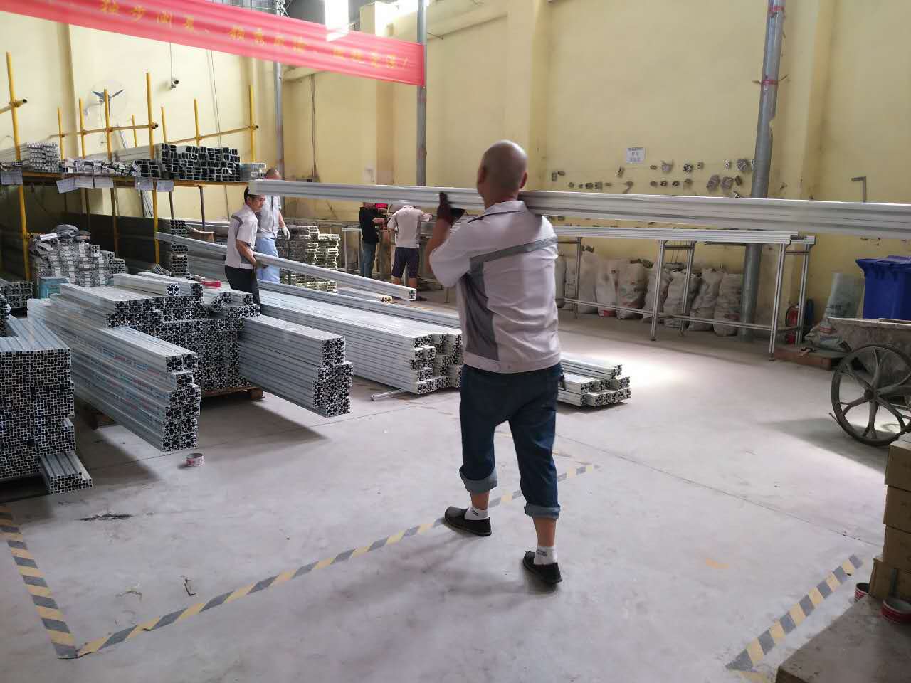 匯利興兄弟們一個(gè)接一個(gè)的去搬鋁型材,越干越有勁,個(gè)個(gè)都喊著“匯利興戰(zhàn)士們加油、加油”匯利興兄弟們的加油吶喊聲在整個(gè)小院里回蕩。因?yàn)檫@是他們對工作的熱情、對生活的態(tài)度、對人生的樂觀、對夢想的渴望、對工作的認(rèn)真負(fù)責(zé)、對事業(yè)的兢兢業(yè)業(yè)。這就是我們匯利興團(tuán)隊(duì)所具有的精神。 簡單的事情重復(fù)做,你就是專家。重復(fù)的事情用心做,你就是贏家。對于每一件事匯利興兄弟們始終都以一種認(rèn)真負(fù)責(zé)的態(tài)度去對待,因?yàn)閷τ诿考露际亲约旱内A家。