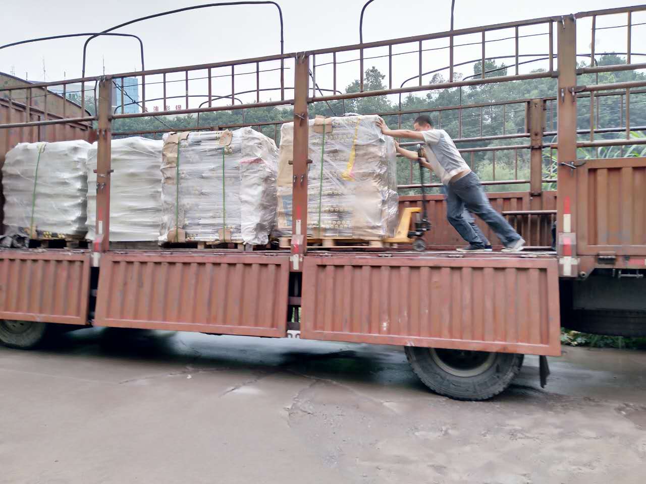 匯利興家人們始終如一、團(tuán)結(jié)一致、敬職敬業(yè),他們齊心協(xié)力地、小心翼翼用心呵護(hù)他們的心血之作,正如作家小心翼翼地呵護(hù)自己所寫(xiě)的書(shū)一樣。因?yàn)檫@是他們奮斗后的結(jié)果、是他們努力后的收獲,雖早已汗流浹背但為了能使?jié)L筒整齊擺放在車(chē)上,他們拖著疲憊的身子使用自洪荒之力將滾筒擺放整齊,盡力做到最好。