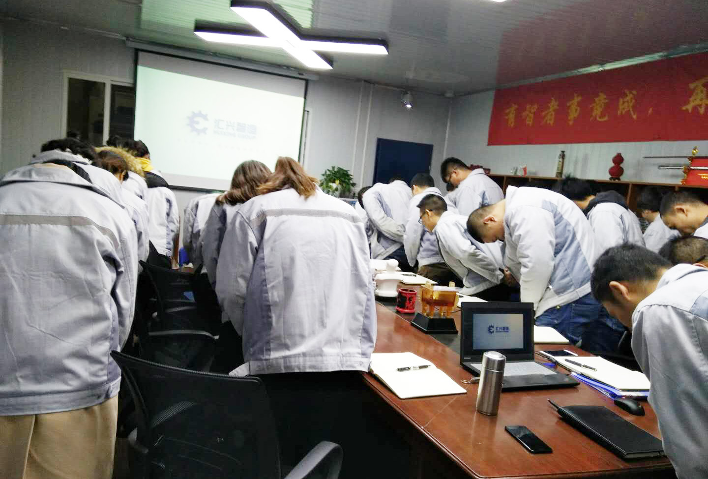 長風(fēng)破浪會(huì)有時(shí),直掛云帆濟(jì)滄海。12月21日晚,我司全體人員在匯利興學(xué)校召開十一月份月度會(huì)議,會(huì)議進(jìn)場依次由自我價(jià)值估秤及簽到入場,由張副總主持。 全體員工觀看公司相關(guān)視頻及聆聽匯利興之歌 全體人員宣導(dǎo)企業(yè)理念并向企業(yè)三道(人道、孝道、商道)行三鞠躬 會(huì)上,首先依次例行對每月度最佳部門及個(gè)人的選舉及頒發(fā)獎(jiǎng)金;其次胡總經(jīng)理發(fā)表講話,表示到2017年12月28-30日進(jìn)行年度盤點(diǎn),然后談到公司前進(jìn)的步伐、隊(duì)伍的壯大,并表示大家在一起努力工作是難能可貴的,同時(shí)進(jìn)一步談到2018年度員工相關(guān)福利事宜等。最后張副總作相應(yīng)總結(jié),談到公司在大家共同的維護(hù)及努力下,更加的規(guī)范并表示相信大家在后面的工作中會(huì)更加的努力。 月度部門物控部主管徐財(cái)華(圖左)與胡總經(jīng)理(圖右)同框合影 月度之星胡前敏、姜英(圖右)與胡總經(jīng)理(圖左)同框合影