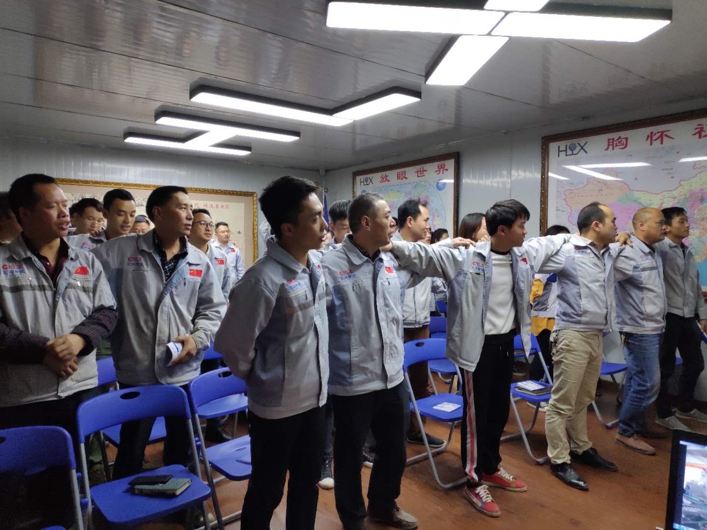 會(huì)議第二項(xiàng)議程,企業(yè)文化的展示。全體匯興人整肅衣冠對(duì)匯興人倍加推崇的“三道文化”(孝道、商道、人道)鄭重地鞠躬,莊嚴(yán)宣誓企業(yè)愿景:“成為全球領(lǐng)先的智能自動(dòng)化產(chǎn)業(yè)鏈集成服務(wù)商”,企業(yè)使命:做受尊敬的好人,造受尊敬的產(chǎn)品,辦受尊敬的企業(yè),建受尊敬的平臺(tái),企業(yè)精神“用情做人、用心做事”,團(tuán)隊(duì)精神“忠誠(chéng)團(tuán)結(jié)、勤奮進(jìn)取”,工匠精神:創(chuàng)于手、精于工、智于器、匠于心、品于行,行為準(zhǔn)則:口中有德、目中有人、手中有技、心中有愛、行中有善,職業(yè)準(zhǔn)則:對(duì)工作熱臉、對(duì)同事笑臉、對(duì)錯(cuò)誤紅臉、對(duì)浪費(fèi)黑臉、對(duì)榮譽(yù)爭(zhēng)臉。隨后二位核心精英擊士氣鼓,士氣比武器更重要,現(xiàn)場(chǎng)氣氛熱烈、振奮人心。