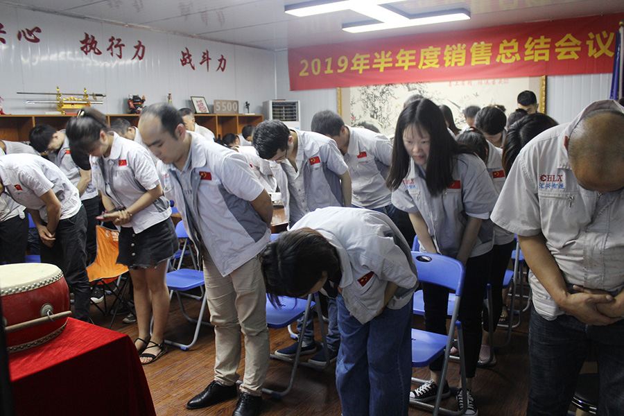 大會(huì)共計(jì)五項(xiàng)議程。會(huì)議第一項(xiàng)議程,企業(yè)文化展示。全體匯興人整肅衣冠對匯興人倍加推崇的“三道文化”(孝道、商道、人道)鄭重地鞠躬,莊嚴(yán)宣誓企業(yè)愿景:“成為全球領(lǐng)先的智能自動(dòng)化產(chǎn)業(yè)鏈集成服務(wù)商”,企業(yè)精神“用情做人、用心做事”及企業(yè)使命。隨后二位核心高管擊士氣鼓,士氣比武器更重要,鼓聲震天,士氣倍增。