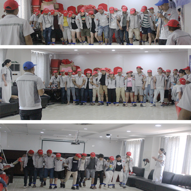 隨后在大家的強(qiáng)烈要求下,全體人員集體來一次“坐地而起”的游戲,挑戰(zhàn)自我、挑戰(zhàn)極限。大家肩靠肩、手挽手,同心協(xié)力一起發(fā)力,當(dāng)然這次并沒有像小組賽那樣順利,一會兒這邊人起來,一會兒另一邊的人沒有起來,這樣反復(fù)經(jīng)過一次又一次的嘗試,大家相互鼓勵、堅持及努力,不斷的修正及解決存在的問題下,最終在第五次的嘗試下,集體以7秒的時間成功取得勝利,全員統(tǒng)一都站了起來。在那一刻全員的心都是沸騰的,不停的在為團(tuán)隊鼓掌為自己鼓掌,同時也讓大家明白了一個道理,無論遇到任何事,都要不斷地去改變、修正、堅持、堅持再堅持,因?yàn)槌晒ν褪窃賵猿忠幌隆?/span>