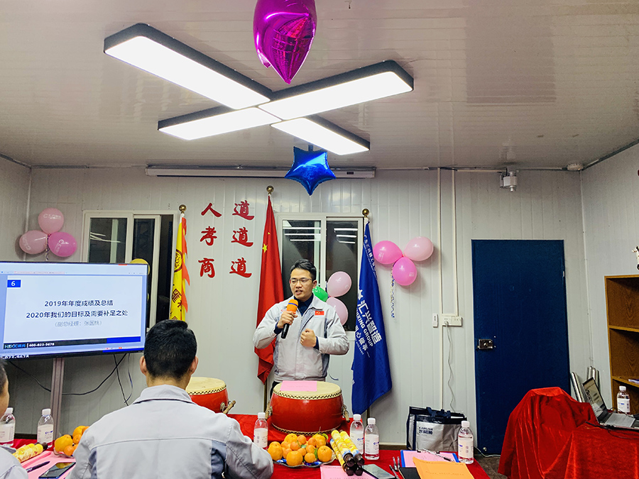 會議第二項議程,胡總經理做2019年工作總結暨2020年工作規(guī)劃。胡總談到,2019年是充實且忙碌的一年,在這一年我們實現了企業(yè)規(guī)模的跨越,成功入駐西彭標準工業(yè)園,同時強調在2020年,經濟下行的市場環(huán)境下,可以預料和難以預料的風險挑戰(zhàn)會更多更大,因此全體人員必須提高戰(zhàn)斗意識,做好打攻堅戰(zhàn)的準備,切實抓好開源節(jié)流各項工作,確保公司實現經營指標的跨越,完成整體團隊目標。胡總談到,在面對充滿挑戰(zhàn)的2020年,我們需要腳踏實地走穩(wěn)每一步,全力以赴為公司添彩,為匯興智造集團20周年華誕獻禮。