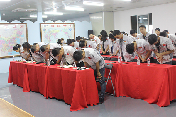 有大家才能有小家,升國旗唱國歌。全體員工精神抖擻,一起唱響國歌-五星紅旗迎風(fēng)飄揚(yáng).....從今走向繁榮富強(qiáng),現(xiàn)場(chǎng)聲音嘹亮、士氣如虹,著實(shí)展現(xiàn)了祖國兒女、新時(shí)代接班人的精神面貌。 會(huì)議開始,全體員工整肅衣冠,對(duì)倍加推崇的孝道、商道、人道鄭重鞠躬,莊嚴(yán)宣誓企業(yè)愿景:“成為全球領(lǐng)先的智能自動(dòng)化產(chǎn)業(yè)鏈集成服務(wù)商”,企業(yè)使命:做受尊敬的好人,造受尊敬的產(chǎn)品,辦受尊敬的企業(yè),建受尊敬的平臺(tái),企業(yè)精神“用情做人、用心做事”,團(tuán)隊(duì)精神“忠誠團(tuán)結(jié)、勤奮進(jìn)取”,工匠精神:創(chuàng)于手、精于工、智于器、匠于心、品于行等。